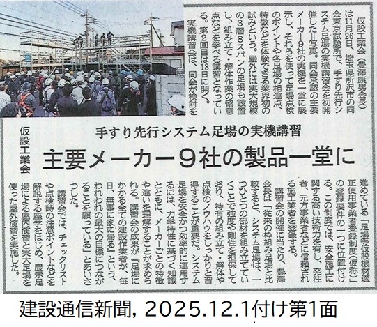 手すり先行システム足場の実機講習/主要メーカー9社の製品一堂に/仮設工業会 | 建設通信新聞Digital