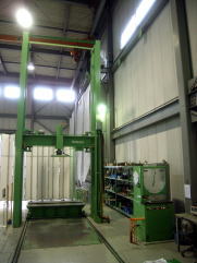 また、基礎にレールが設けられ、これに幅約2mの曲げ試験用架台が乗っており、長さ10mまでの曲げ試験が可能です。